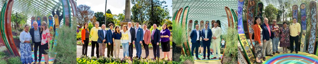 AR Singapore Genestreaming Sculpture – Left to right: Ben Beeton co-founder, sculpture design, field naturalist art, Mali Moir – scientific illustrator, Mayor of Toowoomba Region Geoff McDonald, Shannon Bauwens Ranger Coordinator for the Bunya Peoples Aboriginal Corporation