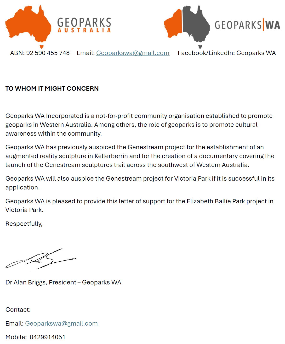 - GeoParks WA are the auspicing body for our project.