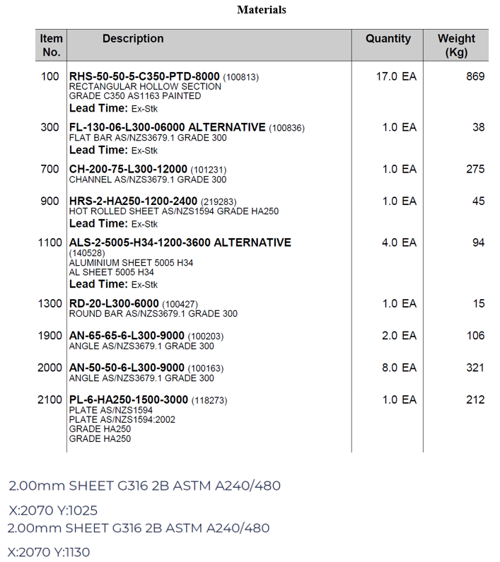 - Materials used in fabrication