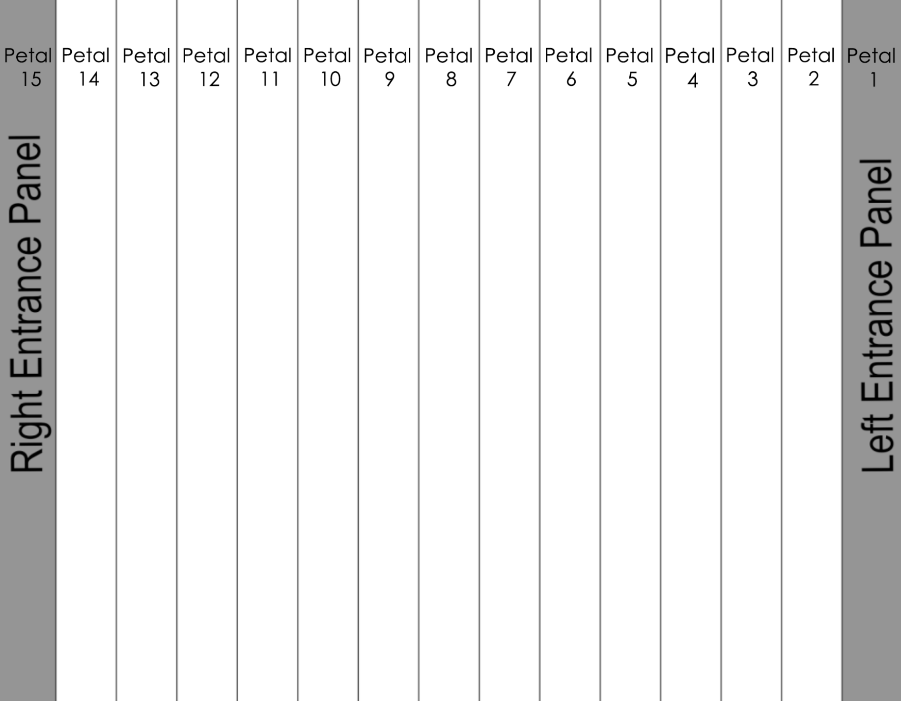 The image below is a plan of the 15 external petals of the sculpture. Petals 1 and 15 are the two sides of the sculptures entrance.