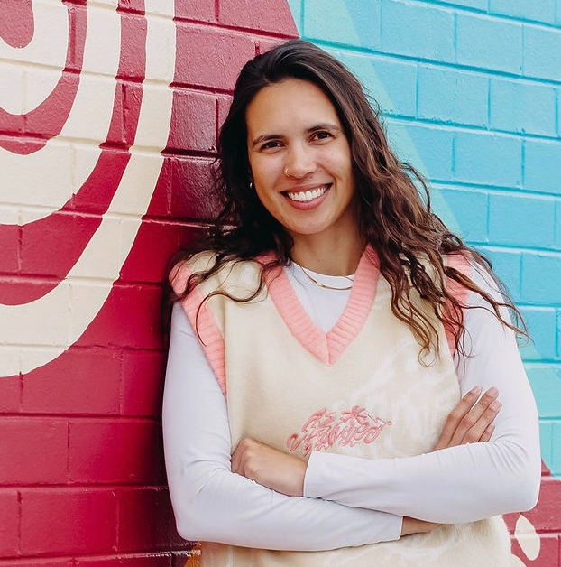 Jade Dolman (JD Penangke) is a First Nations mural artist with connections to Whadjuk, Ballardong, and Arrernte country. Her work highlights the cultural and environmental significance of waterways, depicting organic landscapes and traditional tracks that have inspired the built world. She uses vibrant symbolism, bold colour contrasts and line work to depict movement and knowledge through her work. With 10 years of mural experience, she has created a strong portfolio of public art and contributed around 200 murals to the Perth region. She has notable work at the WA Visitors Centre, Perth Airport, Metronet, Nespresso, and several shopping centres including her largest piece to date at Morley Galleria spanning across 700 squared metres. Jade also designed the 2025 AFL Indigenous All Stars guernsey, the 2024 Hawthorn Football Club Indigenous guernseys, and the 2021–2023 Scorchers Indigenous kit. In 2024, she debuted her solo exhibition Boybidi / Smoke Trails and was a finalist for the Young Achiever Awards in Indigenous Community Leadership. Recognised as the 2023 Young Entrepreneur of the Year by the Indigenous Emerging Business Forum, Jade’s art is a powerful tool for storytelling, cultural preservation, and environmental advocacy.