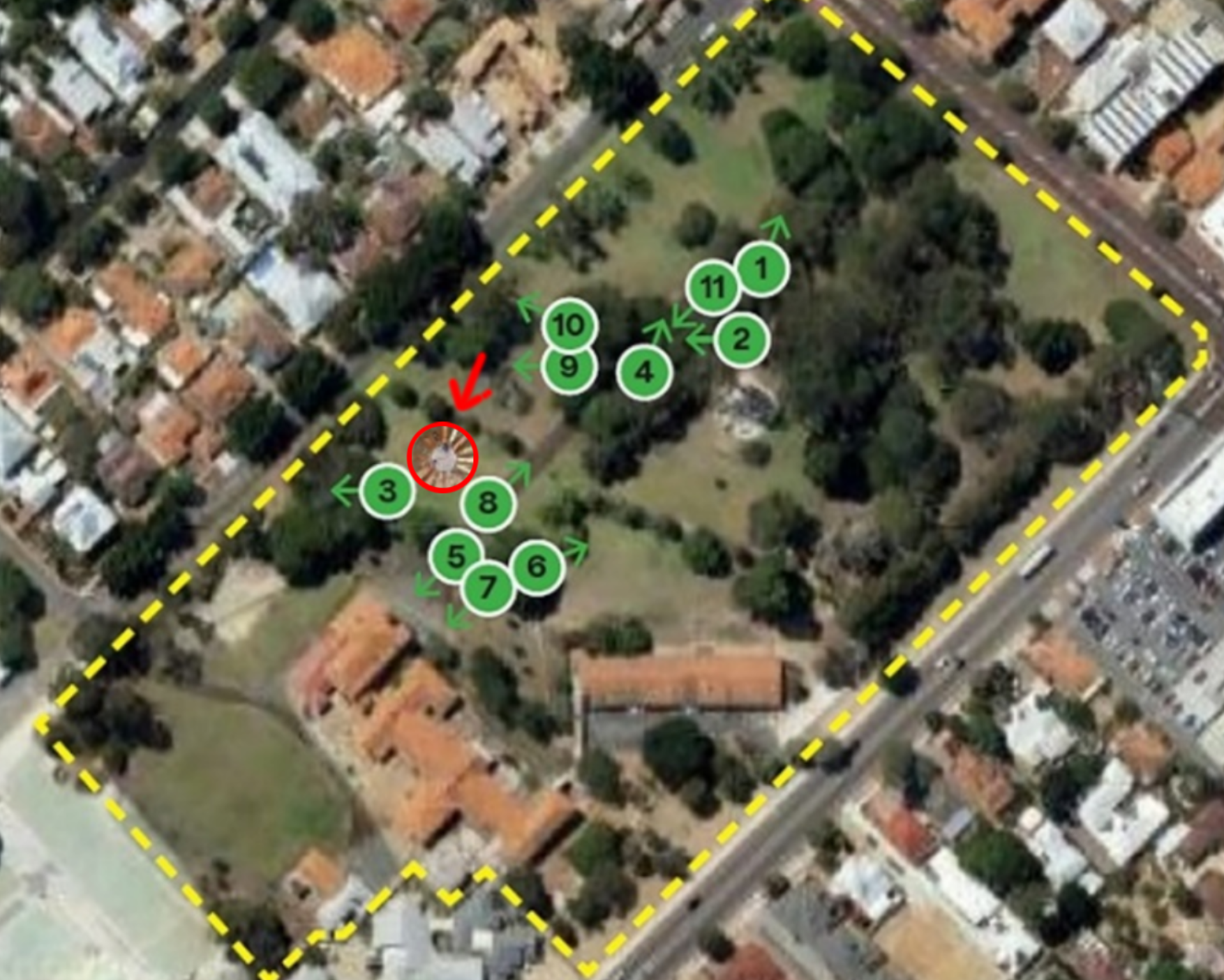 When on site our team members discussed a potential site for the sculpture between sites 3 and 8 which we have been told could potentially work. We are open to other sites as well. We have marked our proposed location with a small sculpture.